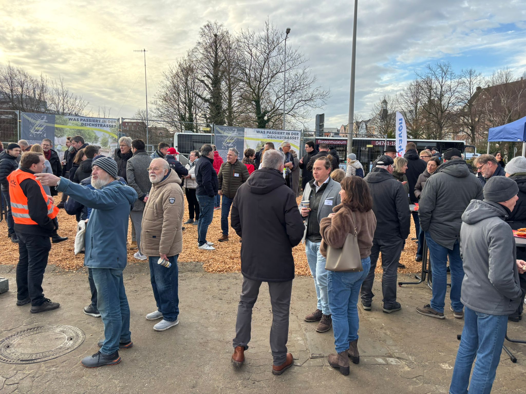 Beim offiziellen Spatenstich informierten sich Anwohnende sowie interessierte Bürgerinnen und Bürger über das Vorhaben "Deichband", welches nun beginnen wird. Foto: Stadt Cuxhaven
