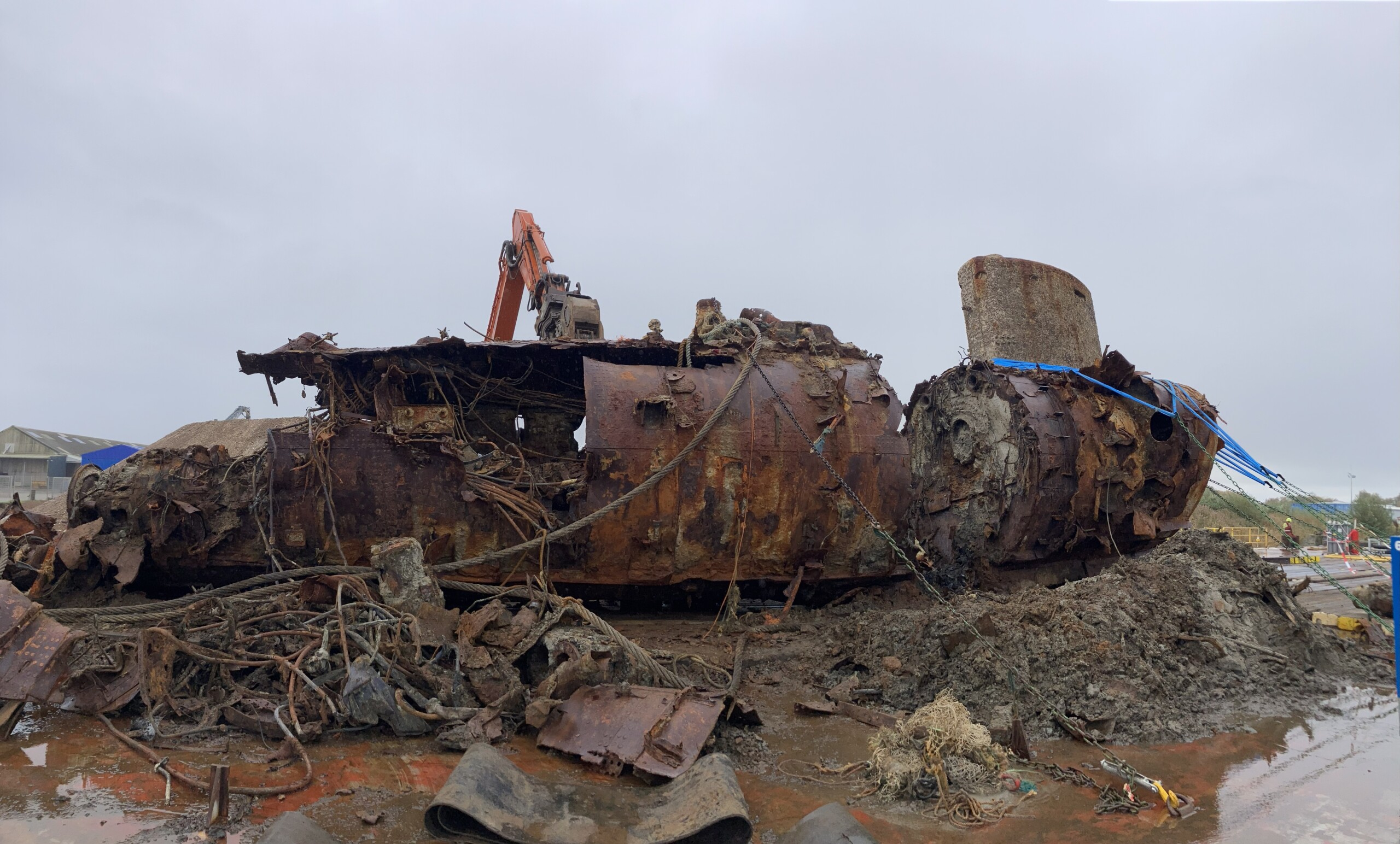 Das Wrack der U 16 wurde geborgen und nach Cuxhaven gebracht. Foto: Mike Belasus/Niedersächsisches Landesamt für Denkmalpflege