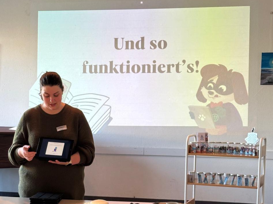 Im Vorfeld konnte sich eine Gruppe Erzieherinnen und Erzieher mit den Möglichkeiten der Lernumgebung vertraut machen. Bibliotheksleitung Stephanie Lüder stellte die kleinen Figuren und die dazugehörige App auf dem Tablet-Koffer der Stadtbibliothek vor. Mit jeder EDURINO-Figur lässt sich ein anderer Inhalt in der App freischalten. Während Fuchs Mika spielerisch das erste Lesen und Schreiben vermittelt, können Kinder bei Hund Luca logisches Denken und programmieren für sich entdecken. Die insgesamt zwölf vom Förderverein gesponserten Figuren bilden ein großes Spektrum an Themen ab, unter anderem auch Gefühle, Kreativität und Natur. Der dazugehörige Stift sorgt gleich für die Entwicklung der notwendigen Feinmotorik.