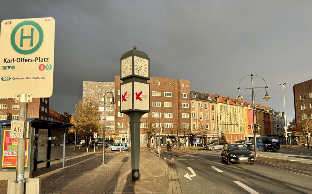 Gute Nachrichten für alle Verkehrsteilnehmenden auf dem Karl-Olfers-Platz: Die Normaluhr funktioniert wieder einwandfrei. Nach Jahren mit unzuverlässiger Anzeige wurde sie Ende letzter Woche umfassend instandgesetzt.