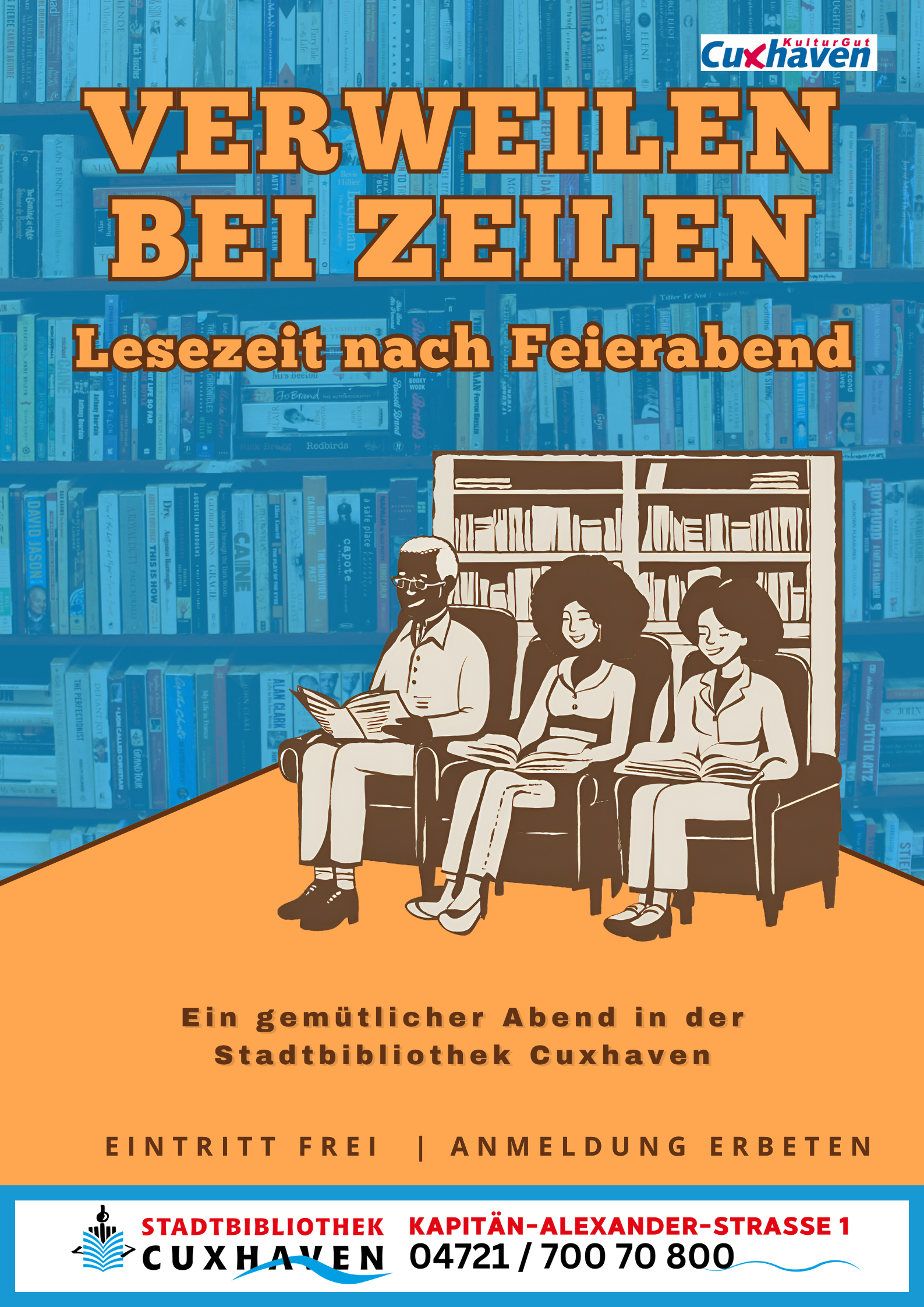 Abends ungestört die gemütliche Bibliotheksatmosphäre genießen, in Büchern oder Zeitschriften stöbern und sich ganz in Ruhe in einen Text vertiefen – all das ist möglich während der Veranstaltungsreihe „Verweilen bei Zeilen – Lesezeit nach Feierabend“ in der Stadtbibliothek Cuxhaven.